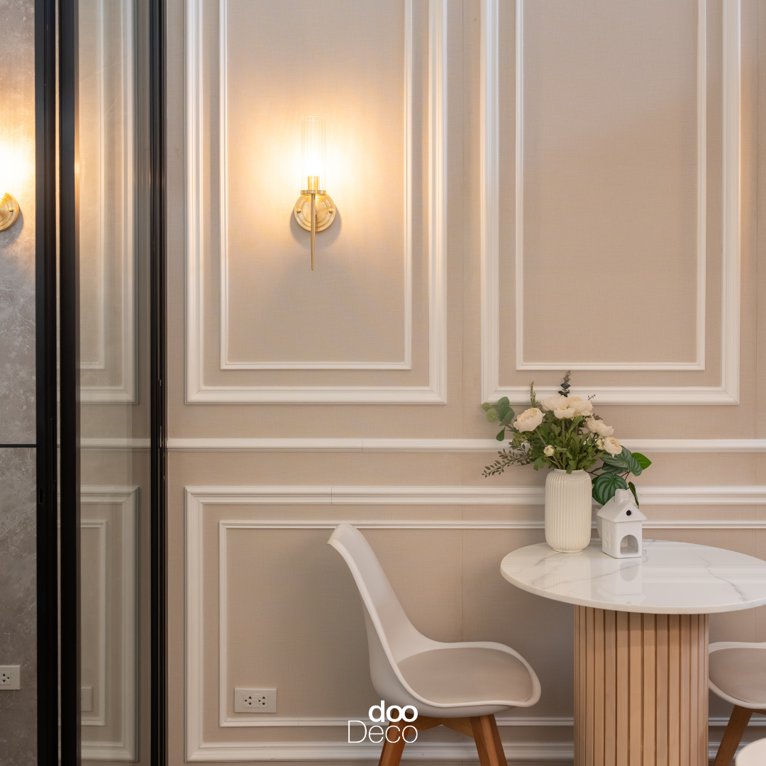 ก่อนกลับอย่าลืมแวะมุมผนังตัวอย่างสไตล์ Modern Classic ที่ผสมความอ่อนช้อยของคิ้วบัวเข้ากับความทันสมัยได้อย่างละมุนตา และยังมีโซนวัสดุ (Materials) ใหม่ๆ ให้เลือกหยิบเลือกแมตช์กันแบบจุใจ ใครที่อยากเห็นของจริง อยากสัมผัส Texture ก่อนตัดสินใจ ออกแบบตกแต่งภายใน บอกเลยว่าห้ามพลาด