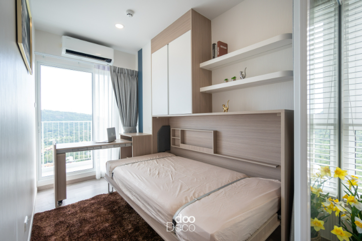 ในช่วงกลางวัน เตียงจะถูกพับขึ้นเพื่อเปิดพื้นที่ทางเดินให้กว้างขวาง เหมาะสำหรับการนั่งทำงานอย่างมีสมาธิ และในเวลากลางคืน เมื่อถึงเวลาพักผ่อนหรือมีแขกมาเยือน เพียงแค่ดึงลงมาเบาๆ คุณจะได้เตียงนอนขนาดมาตรฐานที่นุ่มสบายทันที โดยไม่ต้องย้ายเฟอร์นิเจอร์ชิ้นอื่นให้วุ่นวาย